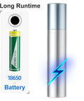 Det kraftfulla 18650-batteriet med kapacitet på 2600mAh säkerställer att ficklampan kan lysa länge utan att laddas ofta. Vid starkt ljusläge kan den lysa upp till cirka 4 timmar, och vid lägre ljusstyrka upp till 6 timmar, vilket ger god flexibilitet beroende på användningsområde. Den inbyggda batterilösningen gör ficklampan enkel att ladda och minimalt beroende av lösa batterier.