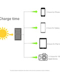 Snabbladdning med QC3.0 gör att du exempelvis kan ladda en smartphone till 70 % på bara en timme under optimalt solljus – perfekt när tiden eller solen är knapp.