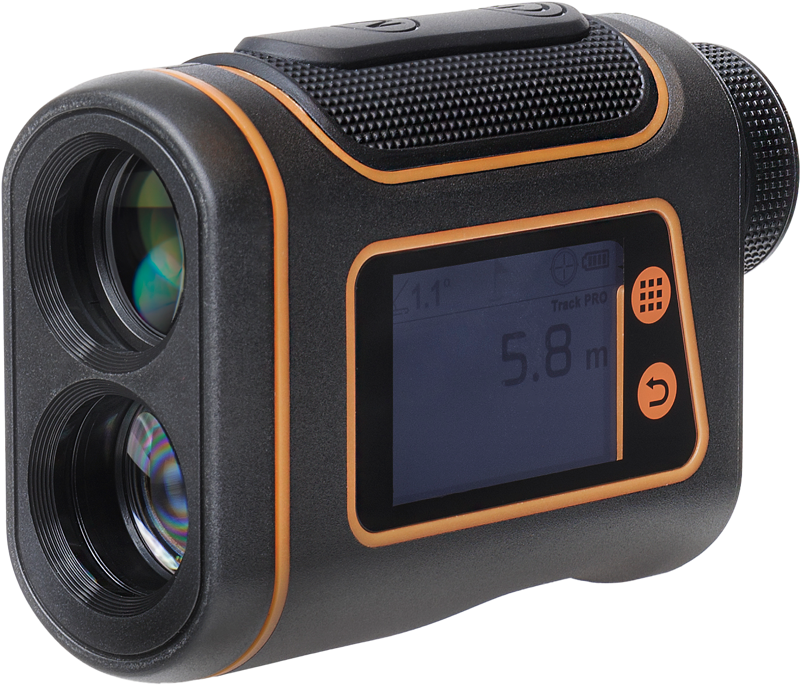 Focus Track RF PRO ger dig möjlighet att mäta vinkeln mellan horisonten och mätpunkten och kan indikera horisontellt avstånd (vinkeljusterat avstånd) och höjd till målet. Det är ett perfekt hjälpmedel vid långdistansskytte i varierande terräng eller när du bara vill ta reda på höjden på en kulle eller ett träd!