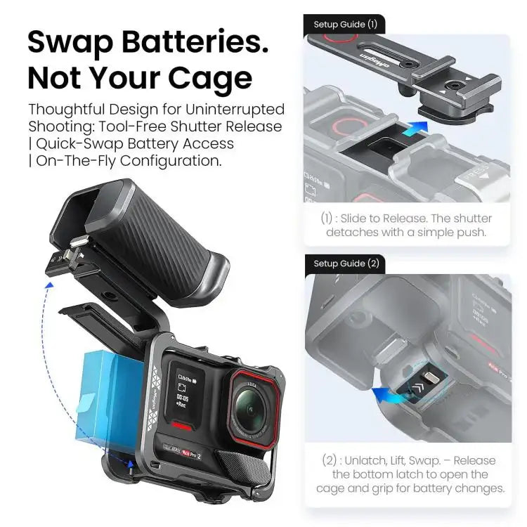 Vores kameragreb er ikke kun praktisk, men også designet med holdbarhed og brugervenlighed i tankerne. Det er lavet af materialer af høj kvalitet, der sikrer lang levetid og pålidelig ydeevne. Med et godt kameragreb i dit udstyr kan du fokusere på at fange øjeblikket i stedet for at bekymre dig om rystede optagelser. Invester i et pålideligt kameragreb i dag, og tag dine actionoptagelser til det næste niveau.✓ Kompatibel med