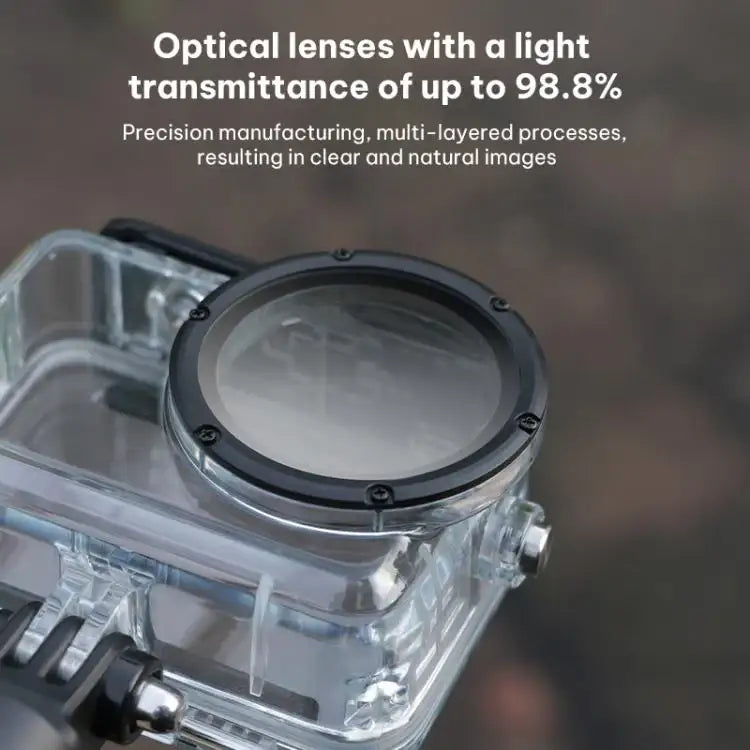 Med dette robuste undervandshus til Osmo Action 6 kan du føle dig tryg, når du filmer under vandet. Huset er designet til at modstå tryk på dybder på op til 60 meter, hvilket gør det ideelt til både begyndere og erfarne dykkere. Den holdbare konstruktion beskytter mod stød, ridser og vandindtrængning, så du kan fokusere udelukkende på at optage de mest spektakulære undervandsscener. Dette er et must-have for alle, der ønsker at tage deres Osmo Action-optagelser til det næste niveau.Sikkerhed og billedkvalitet i fokus